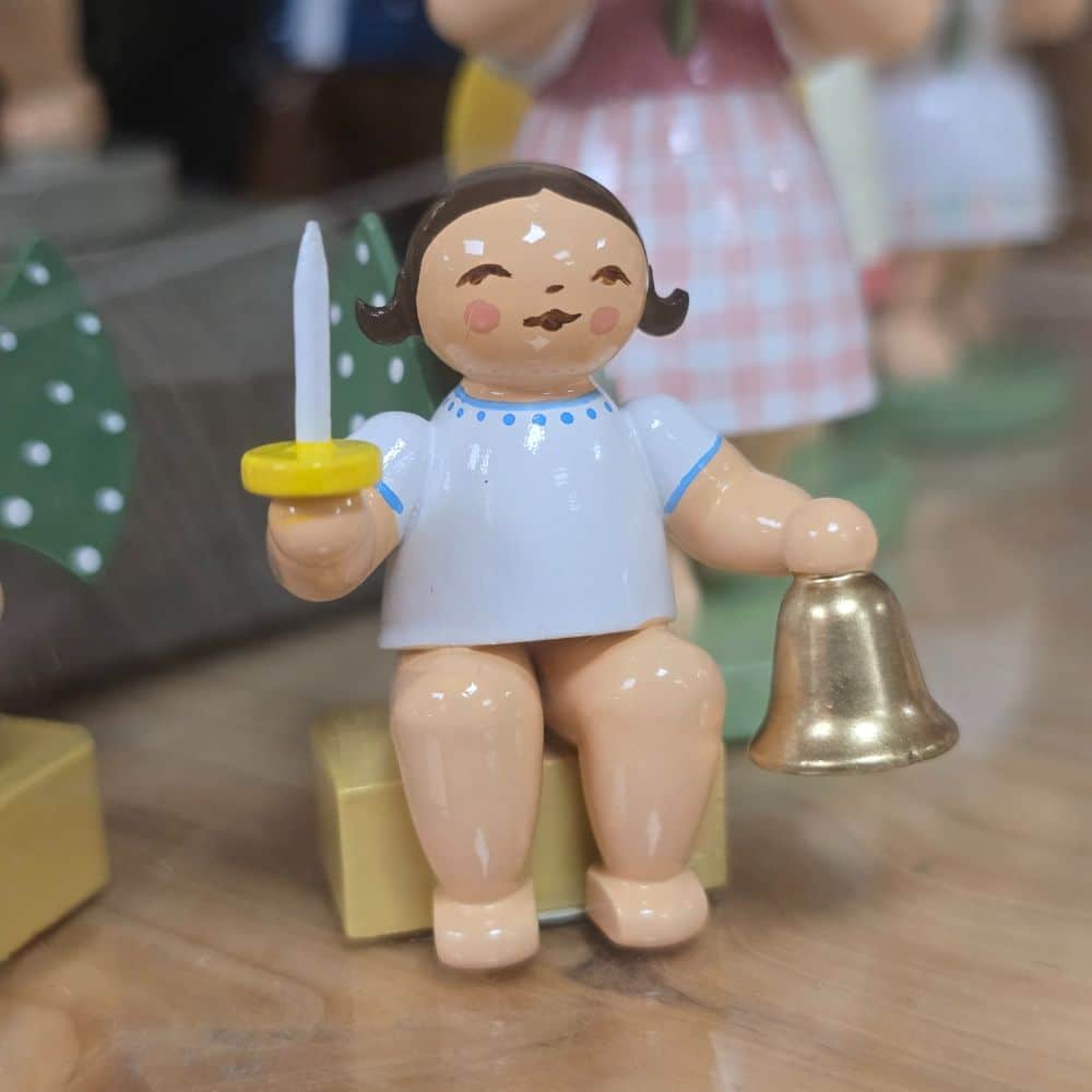 Zum Sortiment gehören unterschiedliche Sammelfiguren aus Holz: Engel mit grünen Flügeln, Figuren mit Blumen, musizierende Motive oder kleine Charaktere mit Hut und feinen Accessoires. Jede Figur steht für sich – und fügt sich zugleich harmonisch in eine bestehende Sammlung ein. Das macht die Auswahl leicht, auch wenn schon Lieblingsstücke vorhanden sind.
